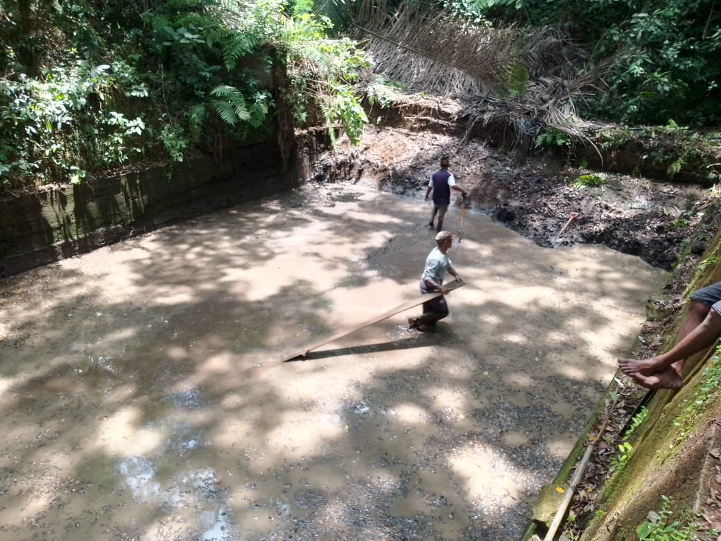 Dengan semangat gotong royong, warga Kampung Pasa, mulai dari orang dewasa hingga anak-anak, bahu-membahu membersihkan embung. Sampah-sampah yang mengambang di permukaan air diangkat, lumpur dan endapan di dasar embung dikuras, serta rumput liar dan tanaman pengganggu di sekitar embung dibersihkan.